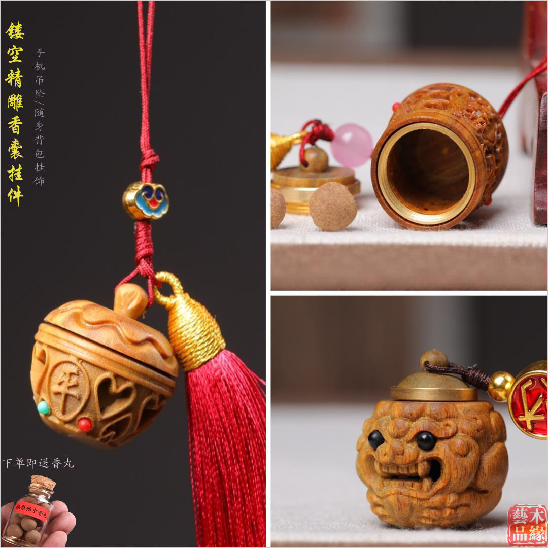 绿檀木镂空香囊球古风车内挂件手机吊坠情侣背包随身招财貔貅饰品热门设计联盟服务商