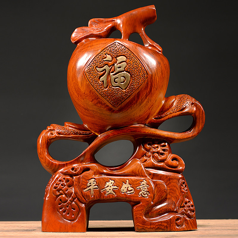 花梨木雕平安如意摆件实木雕刻苹果如意客厅商业装饰红木工艺品热门设计联盟服务商