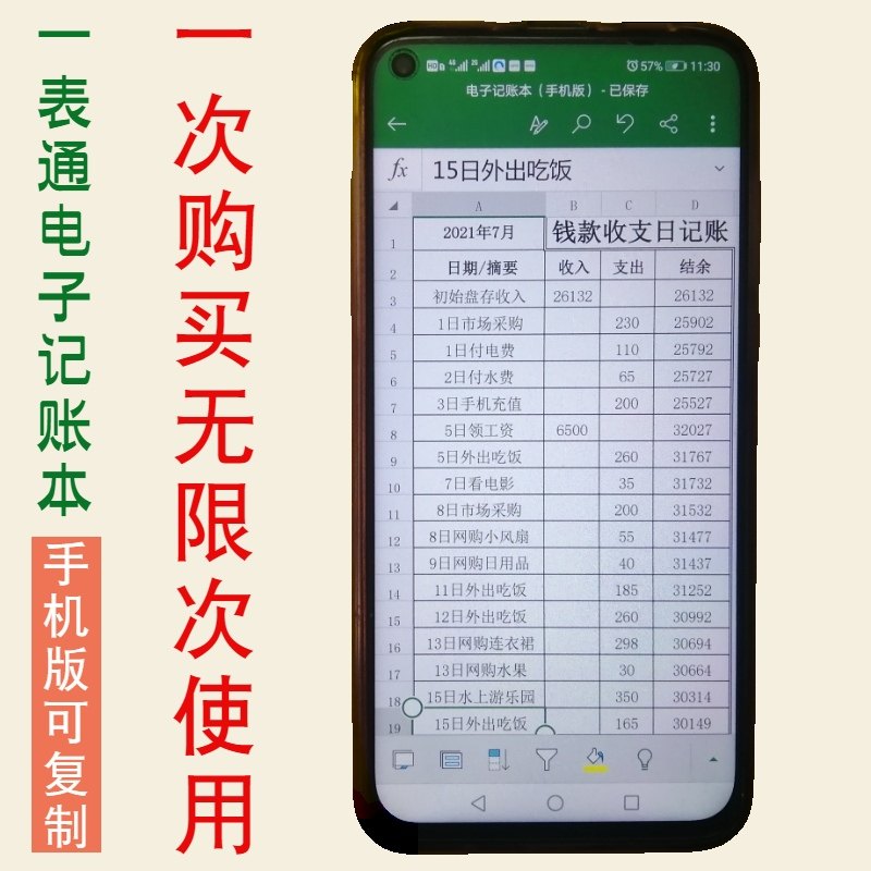 一表通个人店铺公司收支明细定制Excel电子表格记账本/手机版活页