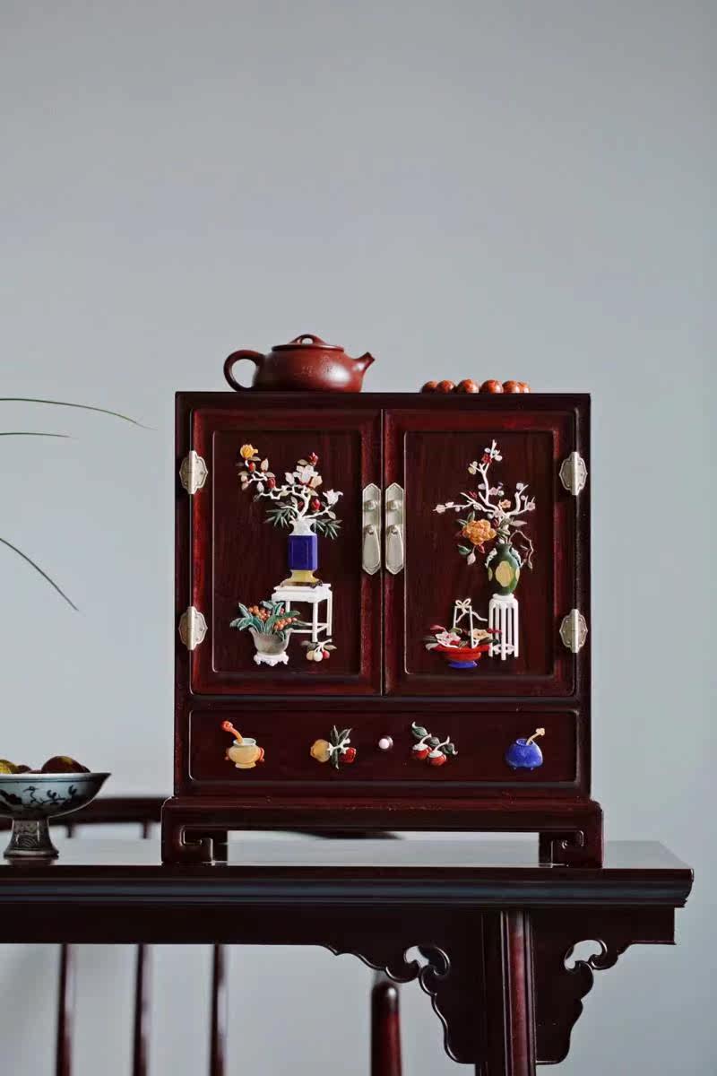 印度小叶紫檀百宝嵌博古图收纳柜红木豪宅会所家居茶边柜文玩收藏热门设计联盟服务商
