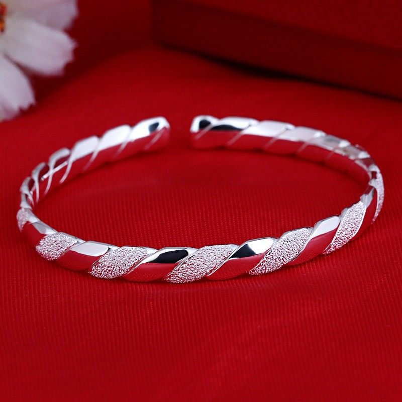 时尚款S990足银爱交织手镯女简约首饰磨砂磨光手环纯银百搭饰品热门设计联盟服务商