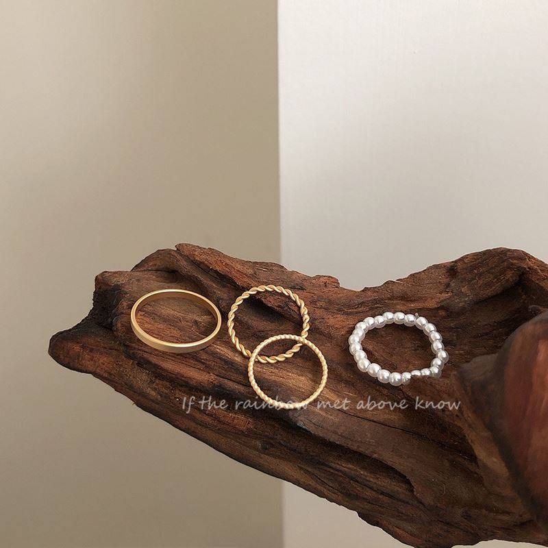 珍珠哑光四件套食指戒指女时尚个性ins潮小众设计简约冷淡风指环热门设计联盟服务商