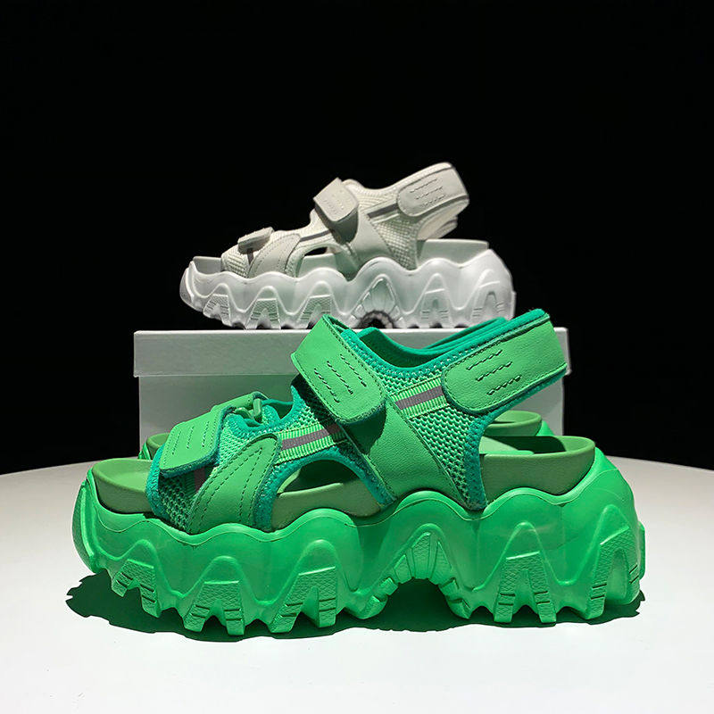 新飞鸿星尔克服饰松糕凉鞋女夏新款百搭厚底增高魔术贴运动凉鞋热门设计联盟服务商