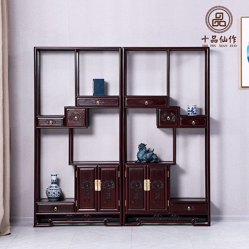 非洲小叶紫檀博古架实木茶具架多宝阁隔断玉石架置物架货架展示柜热门设计联盟服务商