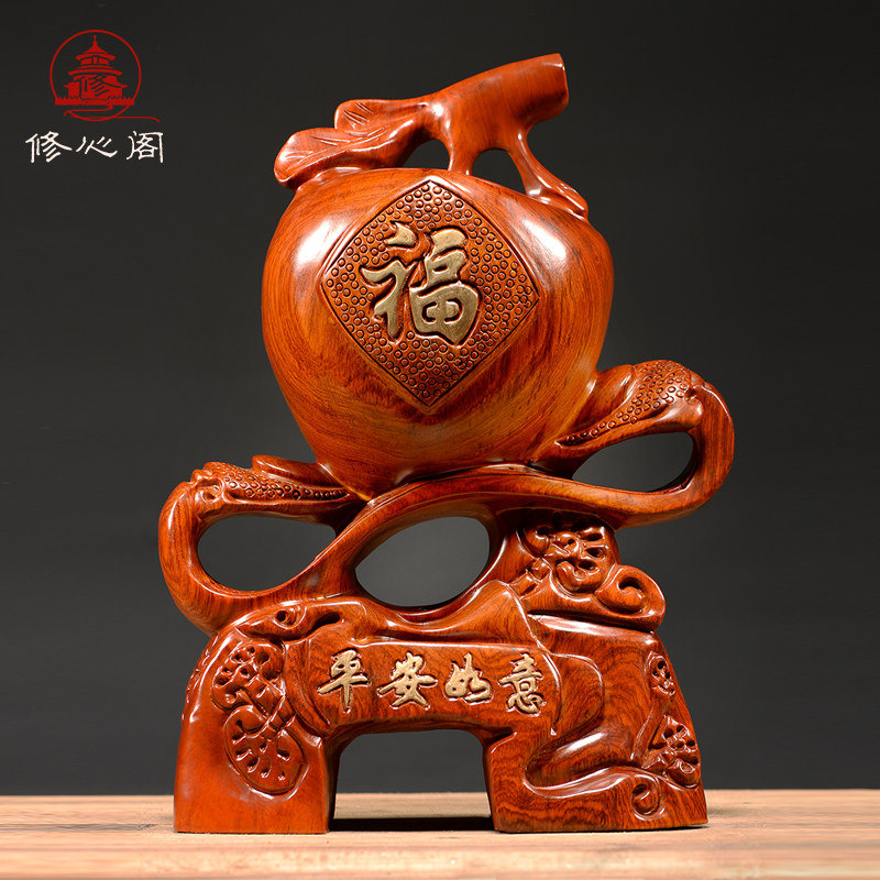 花梨木雕平安如意摆件实木雕刻苹果如意客厅商业装饰红木工艺品热门设计联盟服务商