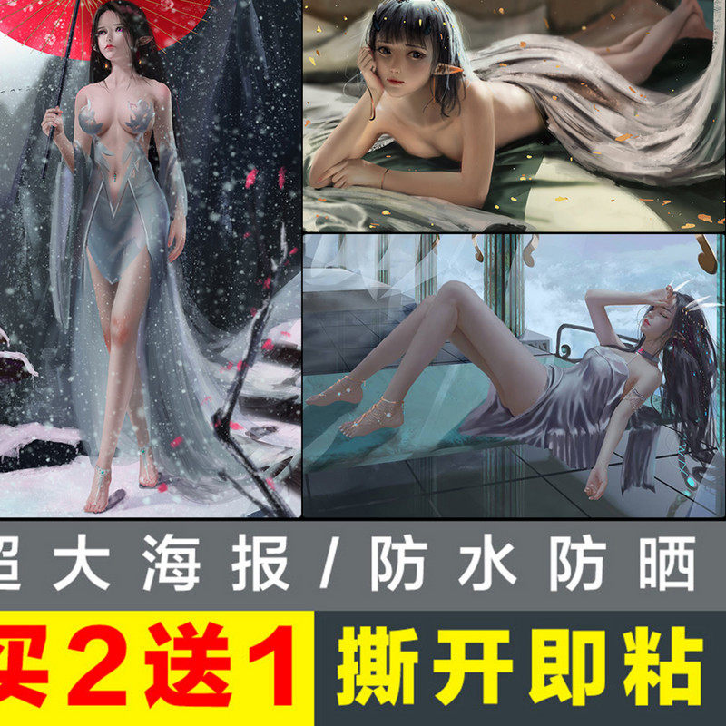 新二次元美女漫画高清海报定制印刷动漫唯美图片自粘墙贴定制热门设计联盟服务商