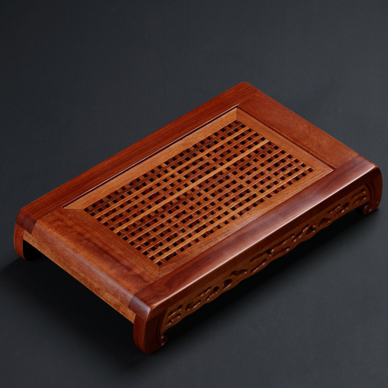 新中式简约花梨木网格茶盘办公客厅实木小型茶台功夫茶具家用茶台热门设计联盟服务商