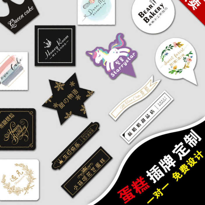 蛋糕插牌烘焙甜品装饰烫金插卡生日快乐插片定做LOGO设计印刷定制热门设计联盟服务商