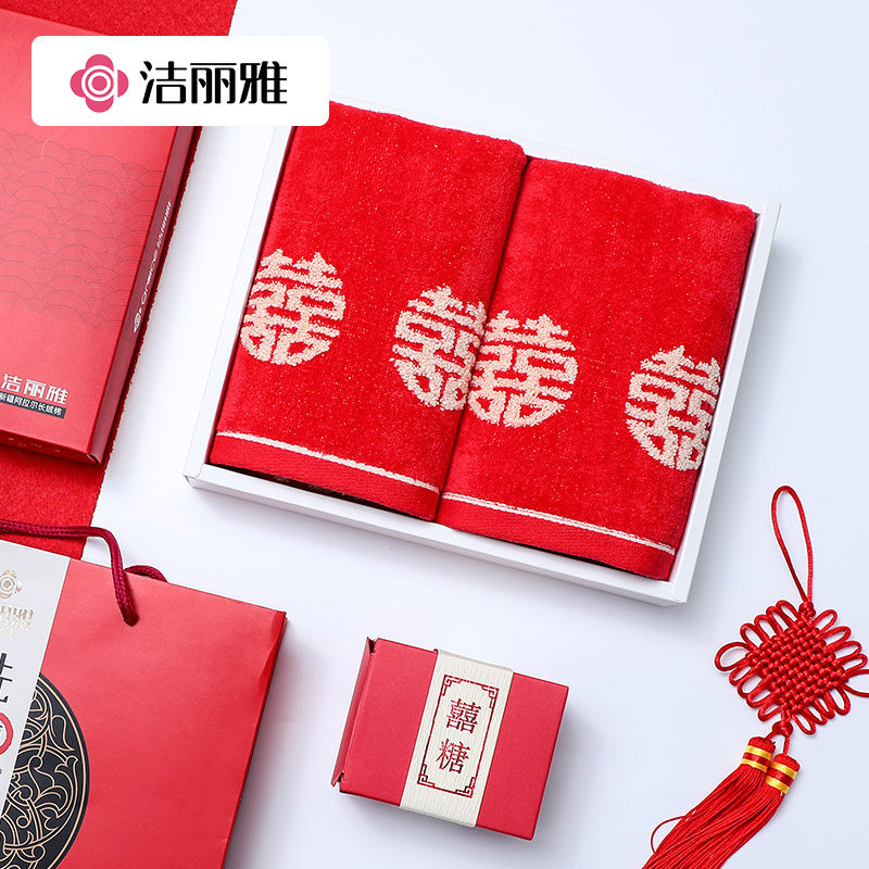 洁丽雅结婚毛巾婚庆 纯棉一对定制礼盒套装喜庆红色毛巾批发团购热门设计联盟服务商