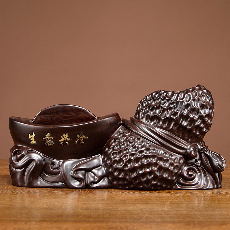 黑檀木雕生意兴隆笔筒名片盒办公组合摆件红木工艺品家居客厅饰品热门设计联盟服务商
