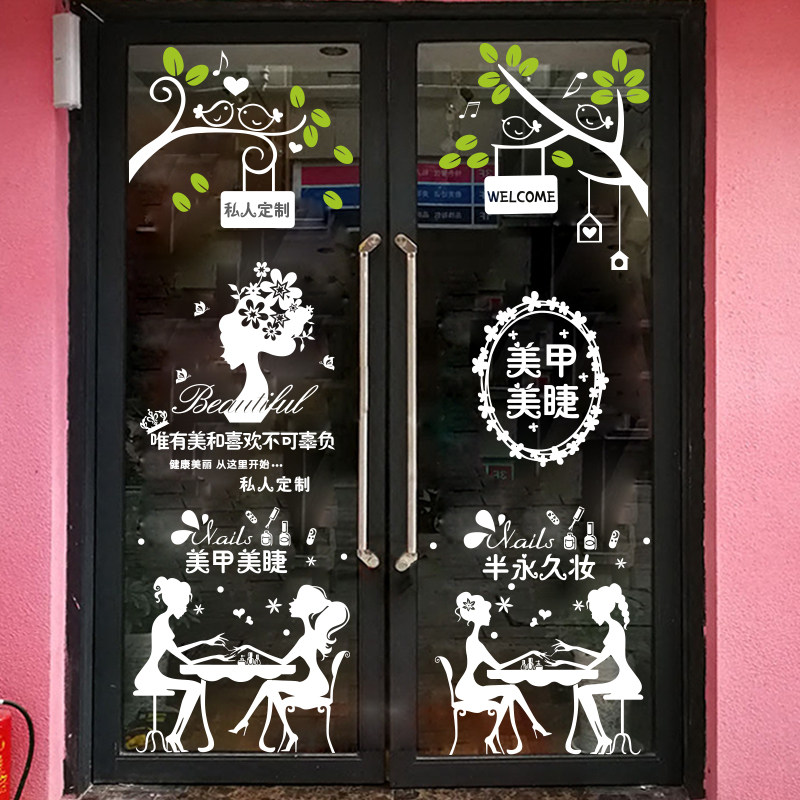 创意玻璃个性经营橱窗美甲睫美装饰新疆门】贴纸【店铺美容院热门设计联盟服务商