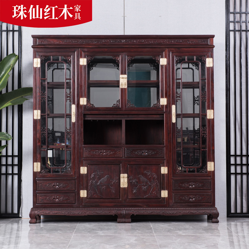 印尼黑酸枝酒柜雕花中式红木家具阔叶黄檀装饰品摆件展示柜全实木热门设计联盟服务商