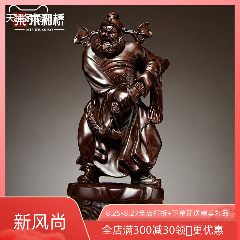 黑檀实木雕刻天师福神钟馗神像摆件家居客厅装饰品工艺品店铺供奉热门设计联盟服务商