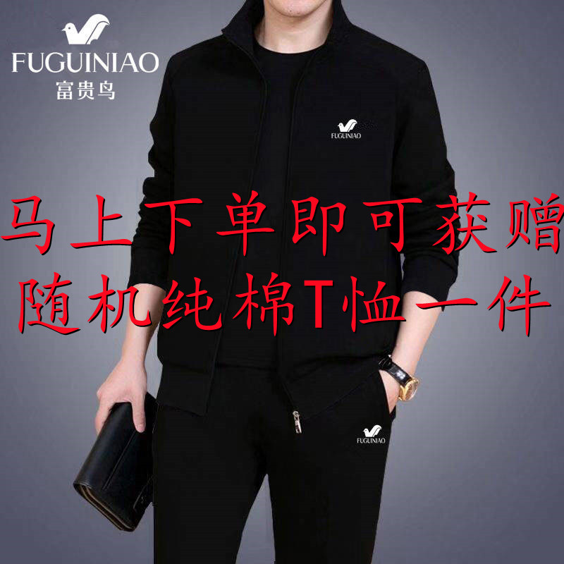 【下单就送纯棉T恤】大牌套装圆领带帽子商务休闲运动百搭两件套热门设计联盟服务商
