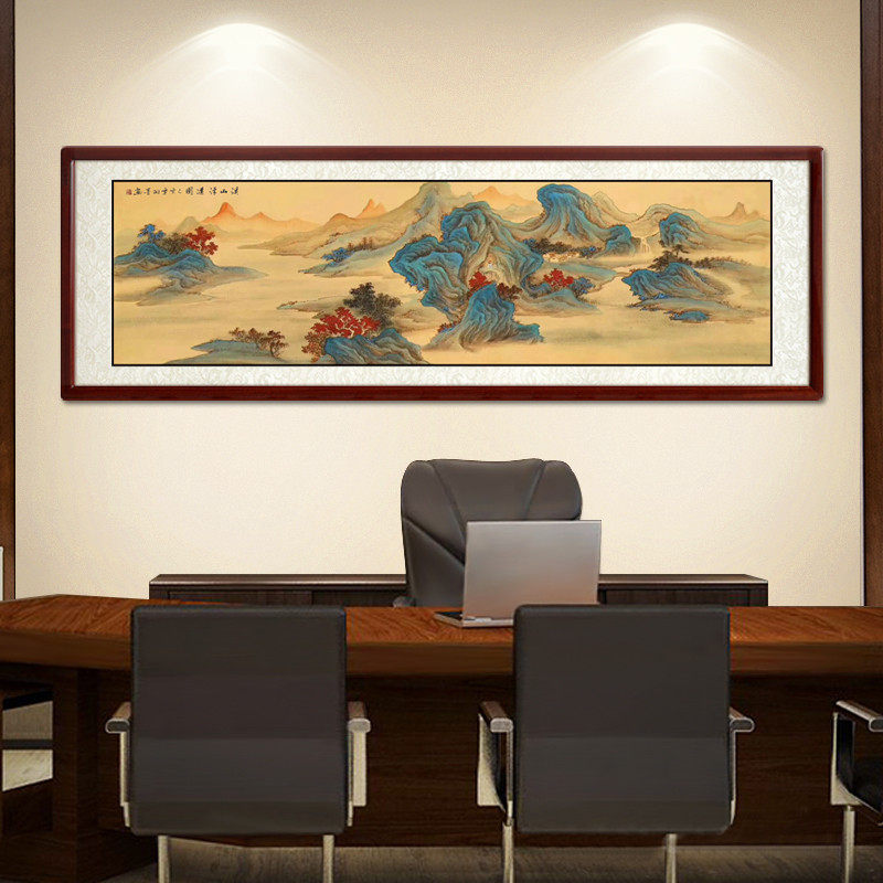 手绘国画山水画客厅沙发装饰画办公室横幅靠山挂画溪山清远图壁画热门设计联盟服务商