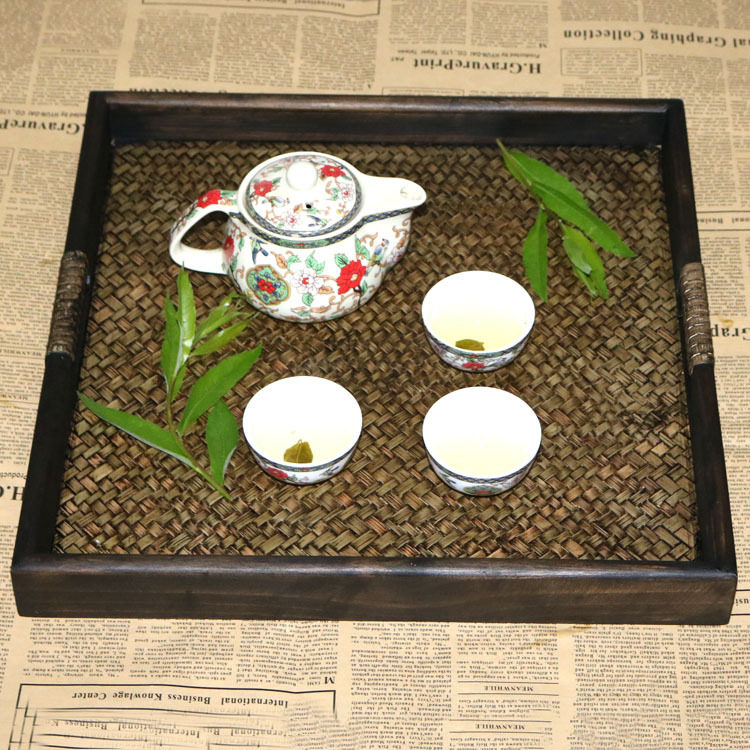 包邮泰国木质水果盘实木茶几供盘美容院藤编会所托盘复古茶盘钥。热门设计联盟服务商
