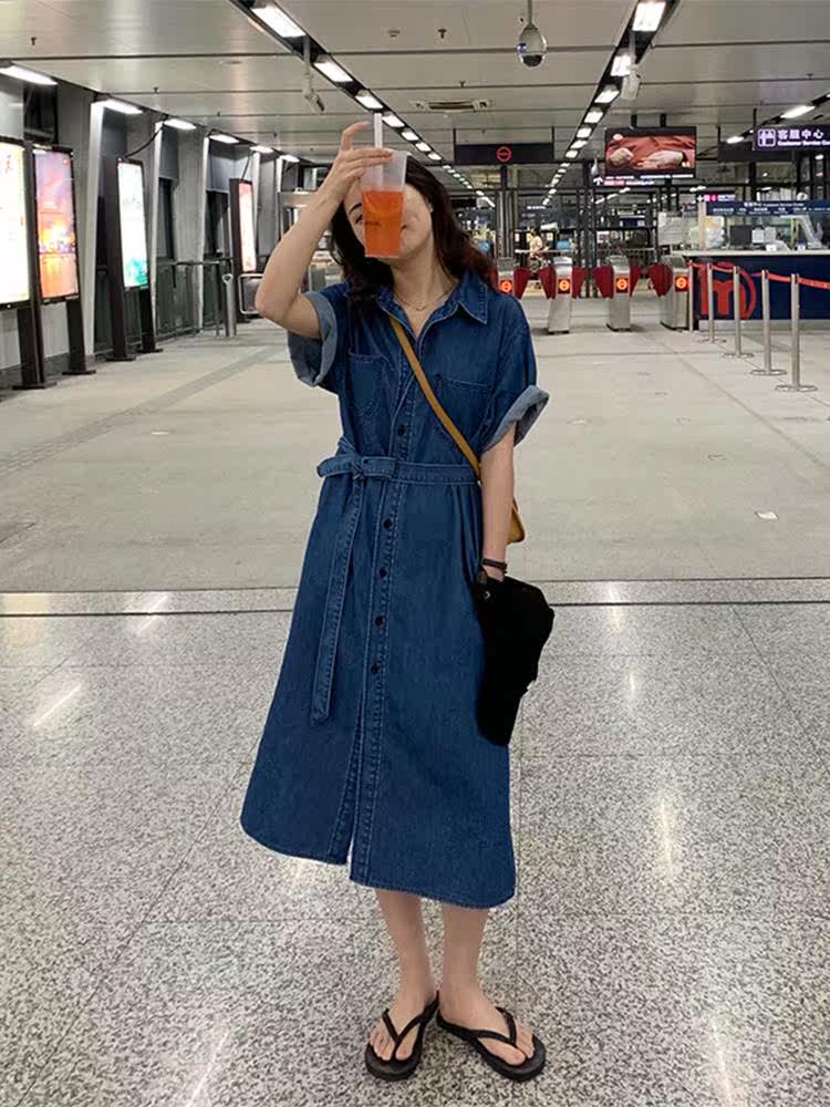 2021新款夏季薄款炸街高级设计感小众法式收腰a字牛仔连衣裙子女热门设计联盟服务商