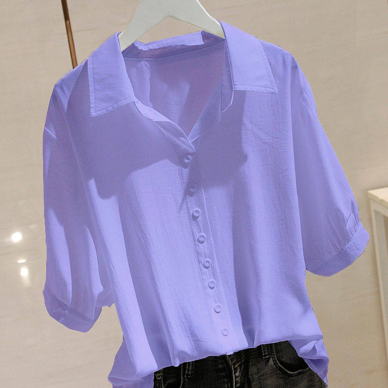 V领短袖衬衫女夏薄款2021新款韩版宽松大码显瘦设计感小众上衣潮热门设计联盟服务商
