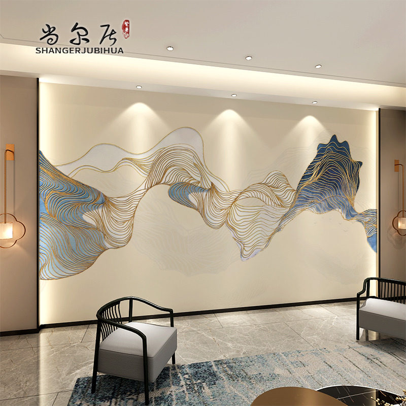 新中式墙纸壁纸电视背景墙壁画轻奢山水客厅沙发影视墙布卧室壁布热门设计联盟服务商