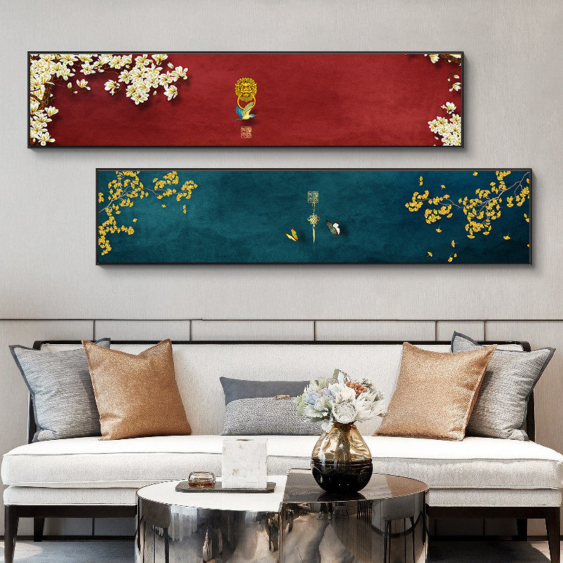 客厅横版装饰画新中式床头画大气长条横幅中国风房间卧室墙面挂。热门设计联盟服务商