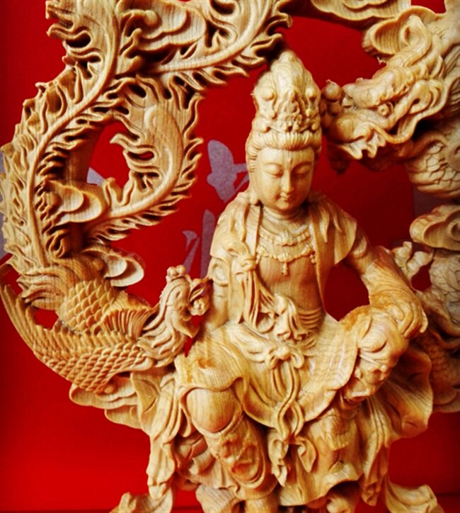 。新崖柏精雕【呈祥自在观音】创意工艺品居家客厅办公室摆件热门设计联盟服务商