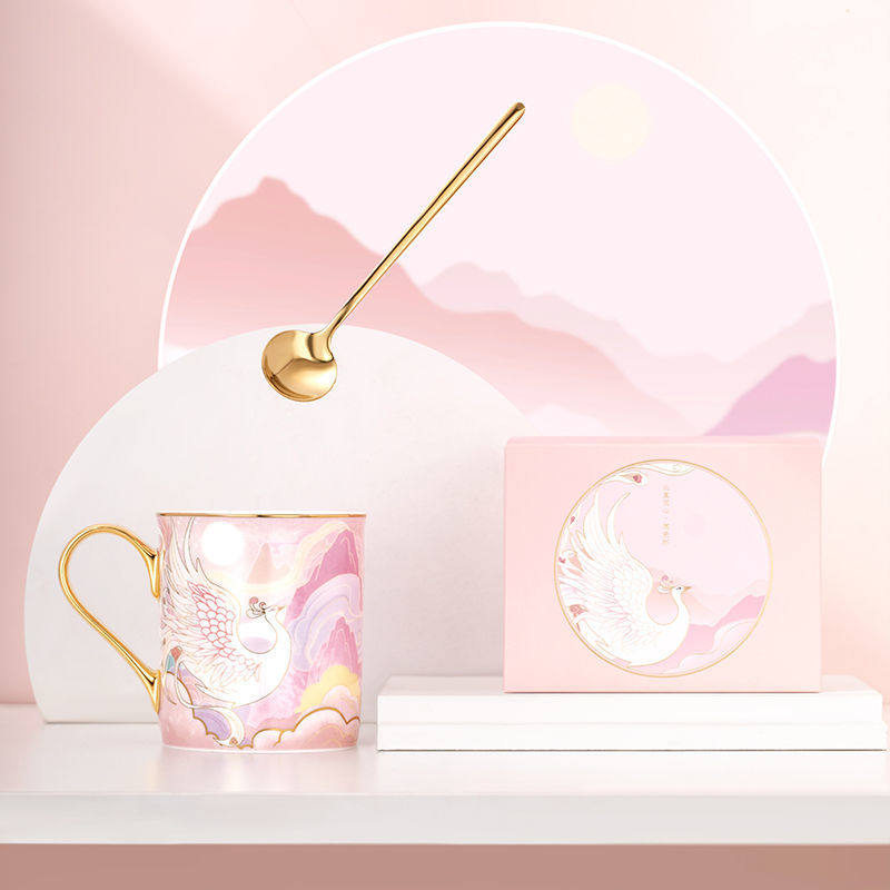 【故宫淘宝】比翼同心情侣水杯咖啡杯陶瓷马克杯带勺文创生日结婚热门设计联盟服务商