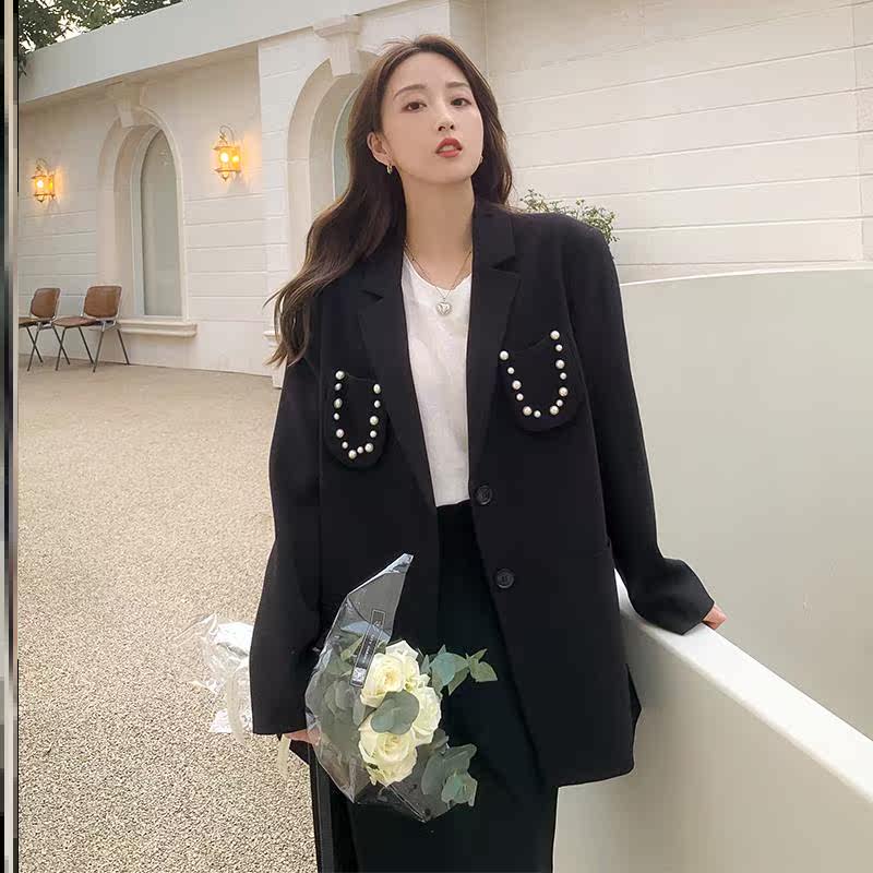 黑色西装外套女设计感小众2021春秋新款韩版宽松休闲小西服女上衣热门设计联盟服务商