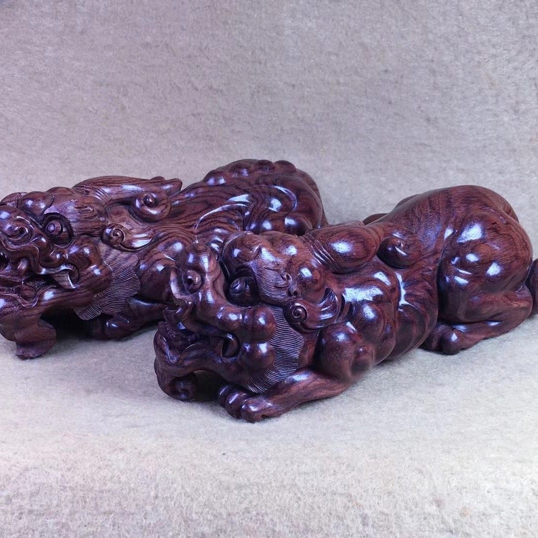 湘工名师华艺雕刻海南黄花梨招财貔恘一对手工精雕摆件手把件包邮热门设计联盟服务商