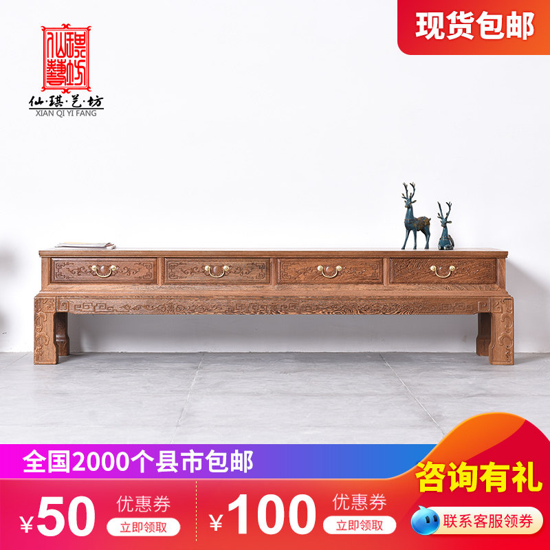 红木鸡翅木家具电视柜多抽新中式实木地柜影视柜客厅落地柜置物柜热门设计联盟服务商
