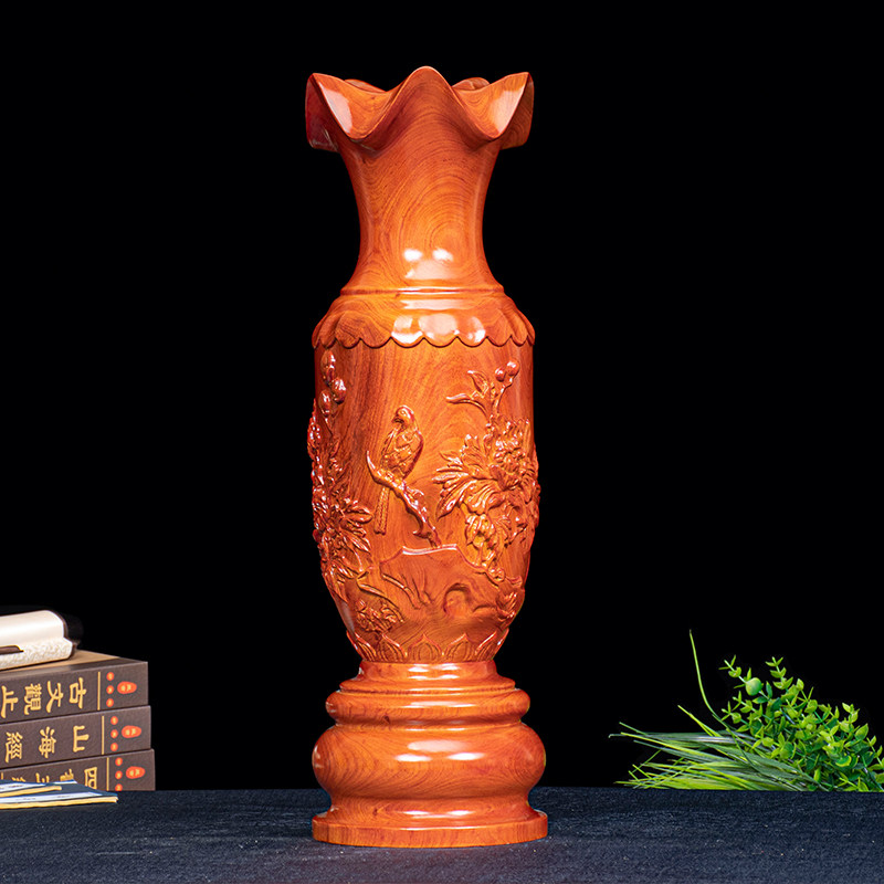 花梨木雕花瓶摆件客厅插花瓶艺术装饰品雕刻品中式复古红木工艺品热门设计联盟服务商