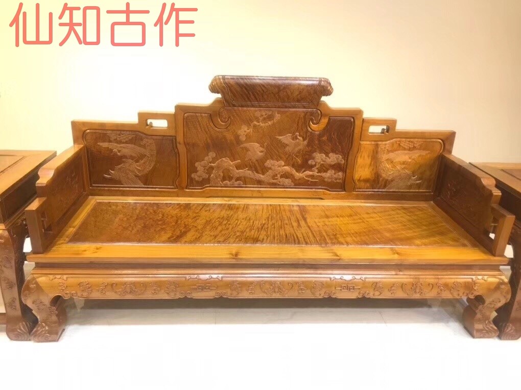 名品阁仙知古作金丝楠木黄金楠松鹤延年沙发实木红木家具别墅会所热门设计联盟服务商