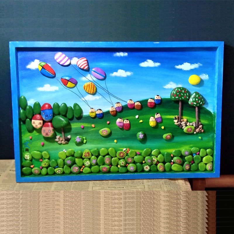 主题春夏秋冬木相框石头拼画手工礼品幼儿园手绘走廊装饰文化墙热门设计联盟服务商