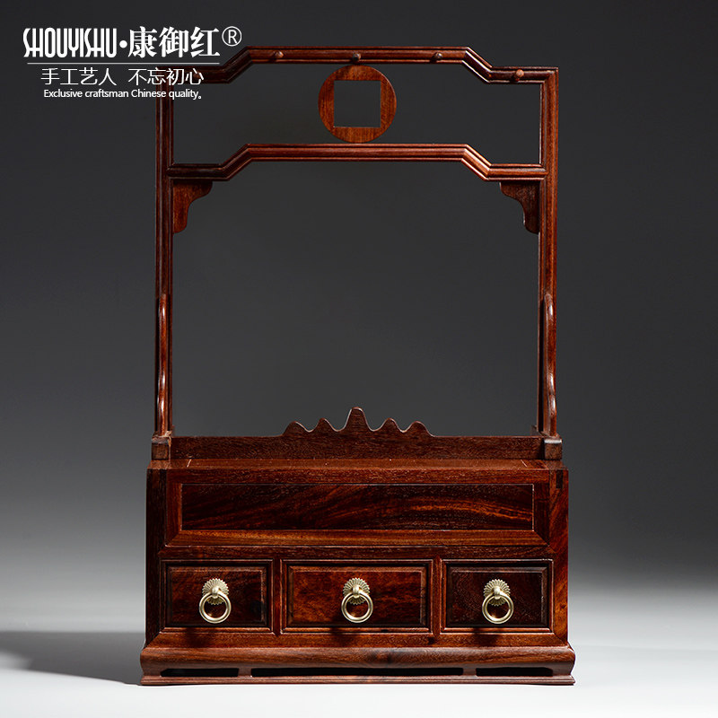 血檀明式红木笔架展示柜收纳桌面创意毛笔挂摆件简约文房四宝用品热门设计联盟服务商
