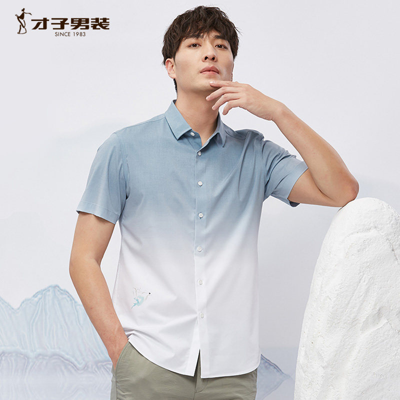才子短袖衬衫男设计感渐变2021新款冰丝竹纤维高端休闲衬衣薄款夏热门设计联盟服务商
