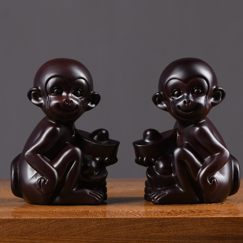 黑檀木雕猴子摆件十二生肖猴花梨木头猴家居办公室装饰红木工艺品热门设计联盟服务商