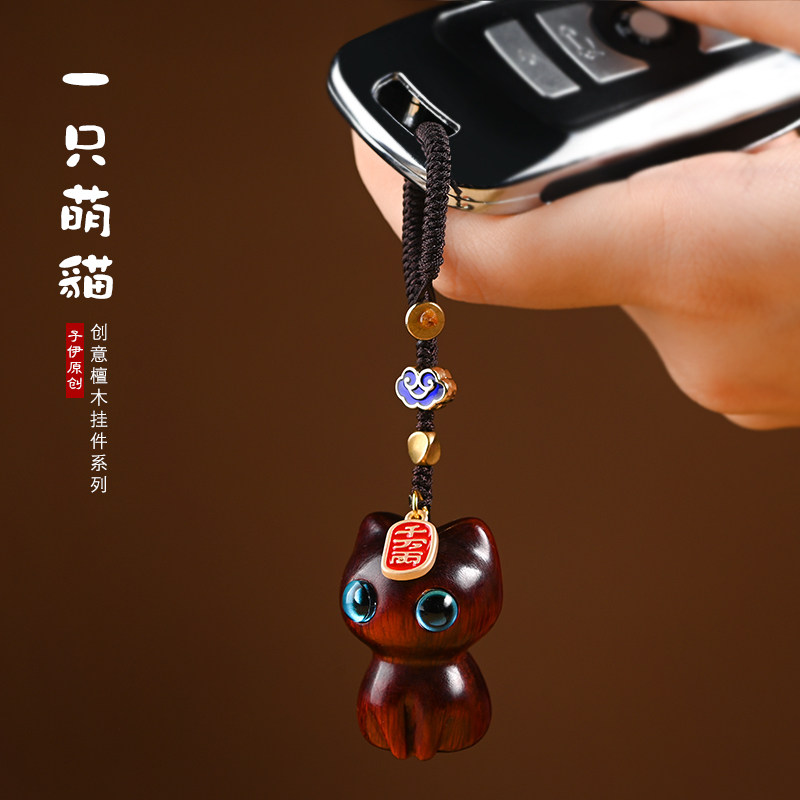 黑檀木汽车钥匙扣挂件招财一只猫咪可爱转运挂饰手机链创意礼品女热门设计联盟服务商