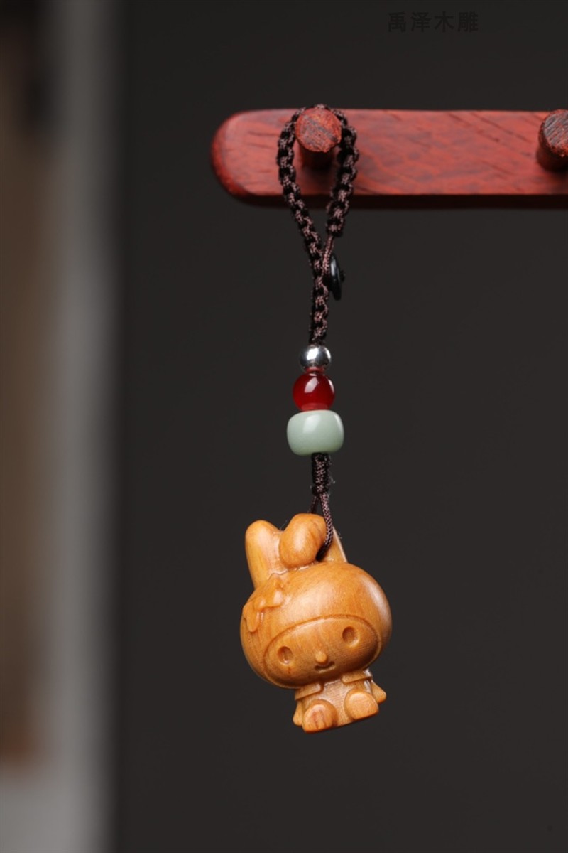 绿檀木雕可爱美乐蒂卡通挂饰实木雕刻工艺品檀木手机包包钥匙挂件热门设计联盟服务商