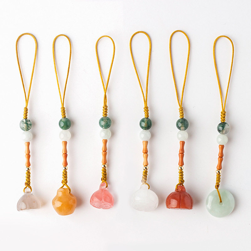 天然玉石玛瑙小莲蓬手机挂件中国古风钥匙小挂饰翡翠平安扣手机链热门设计联盟服务商