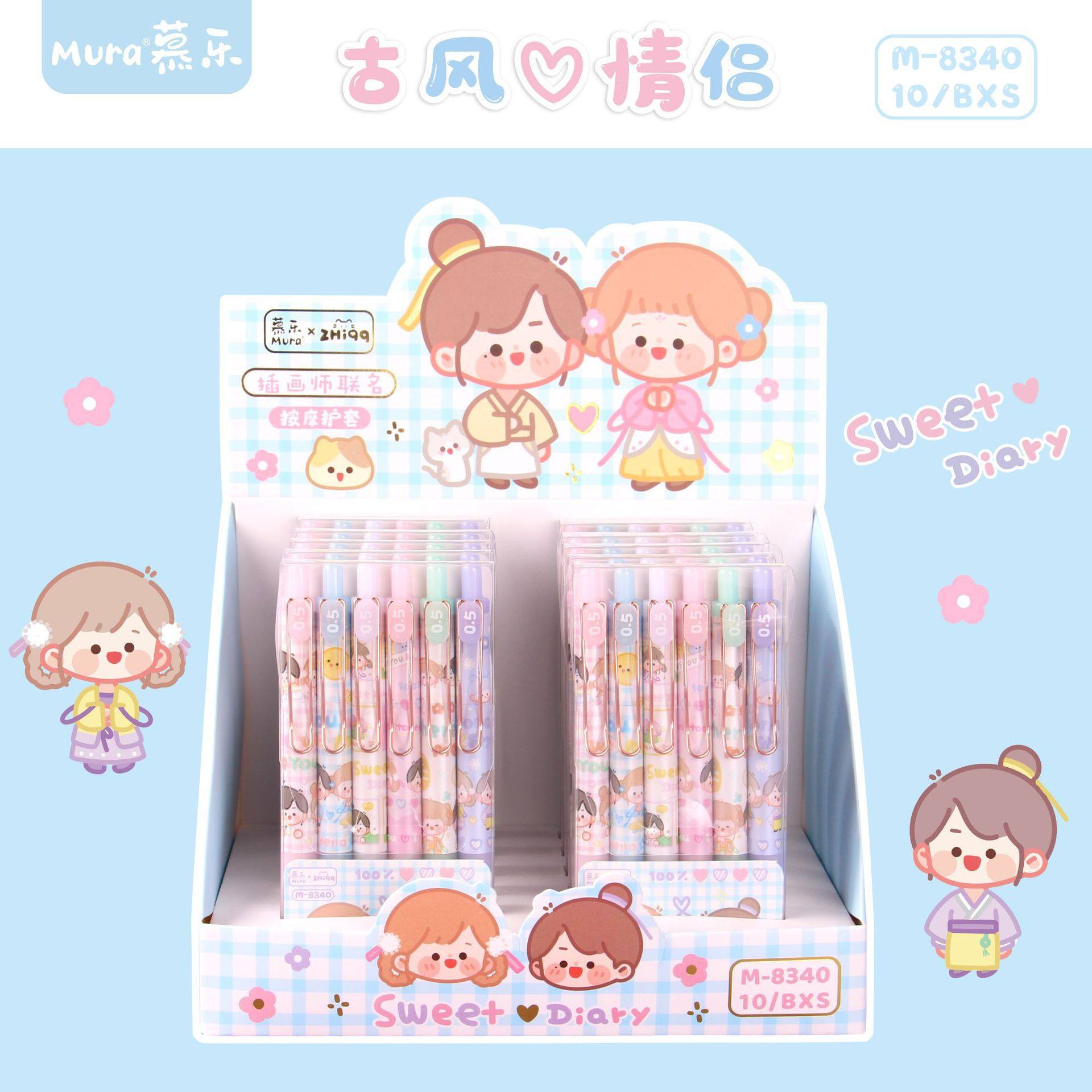 卡通版古风情侣金属笔夹按动中性笔6支装套装学生文具小清新热门设计联盟服务商
